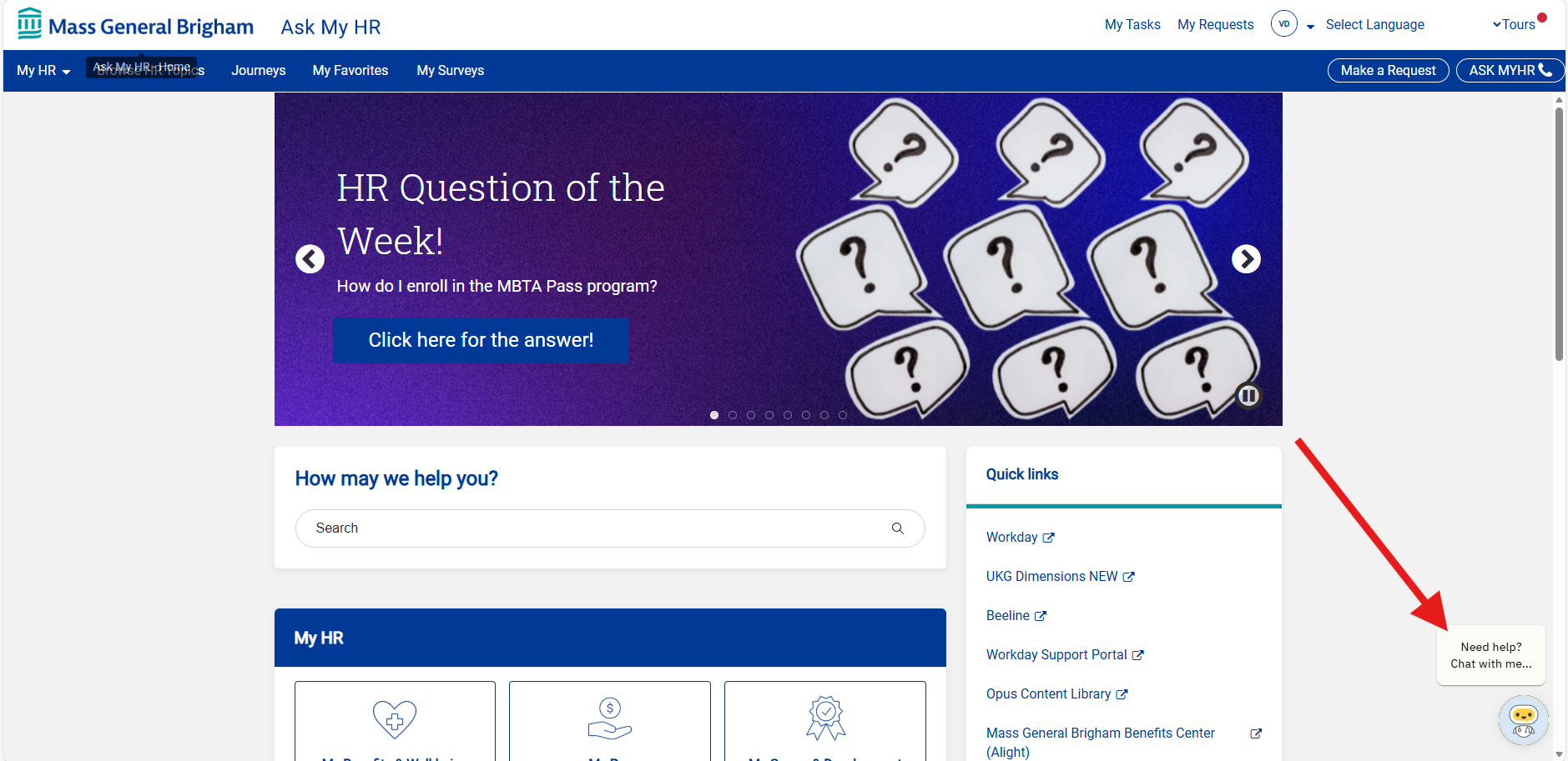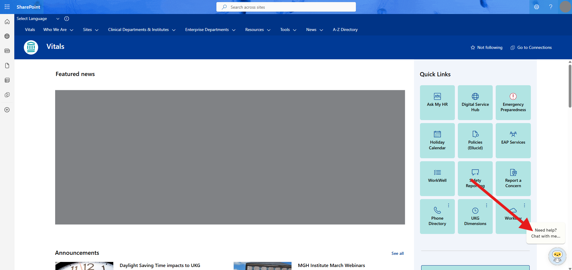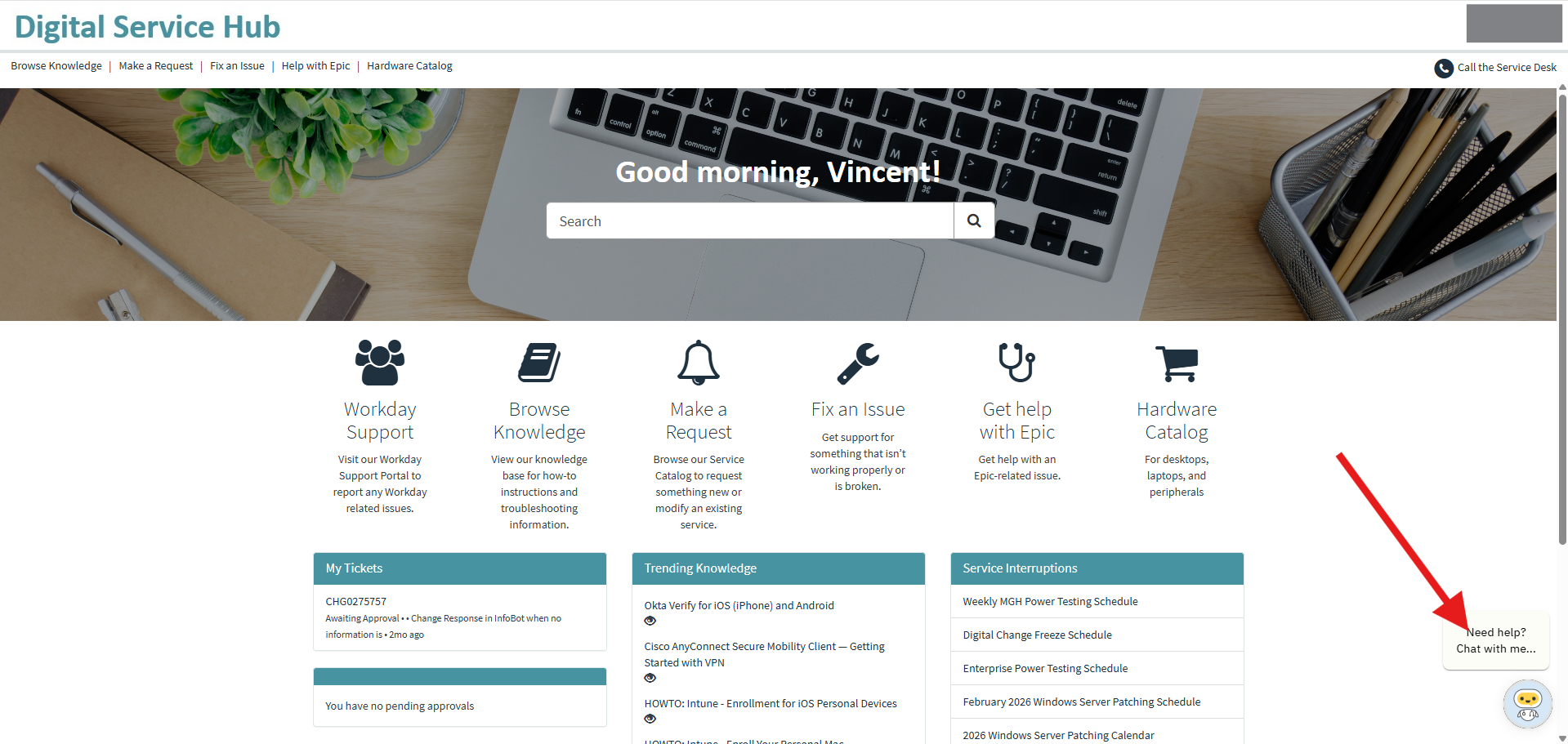 - Vitals and Digital Service Hub and AskMyHR: Look for InfoBot in the bottom-right corner of the page.