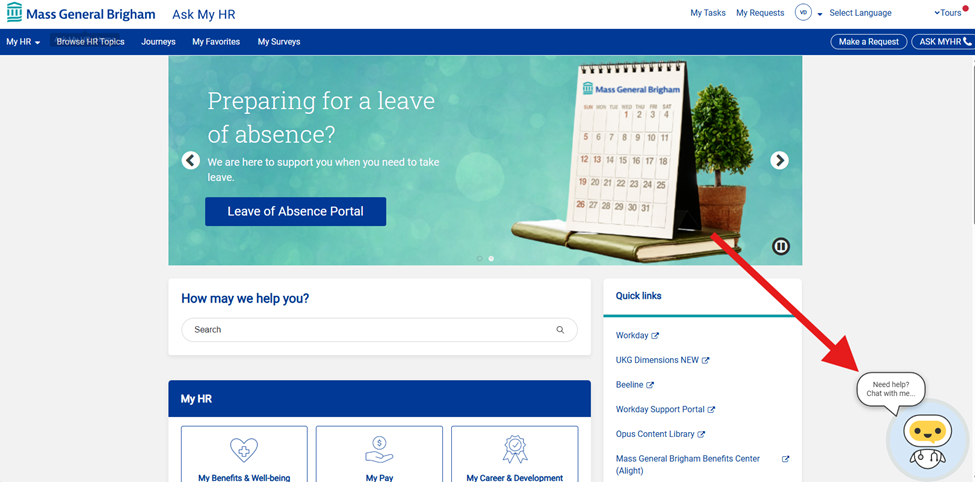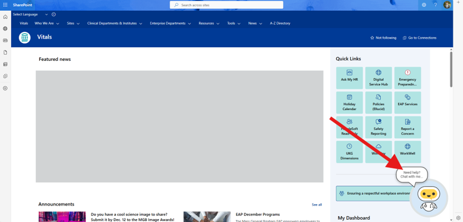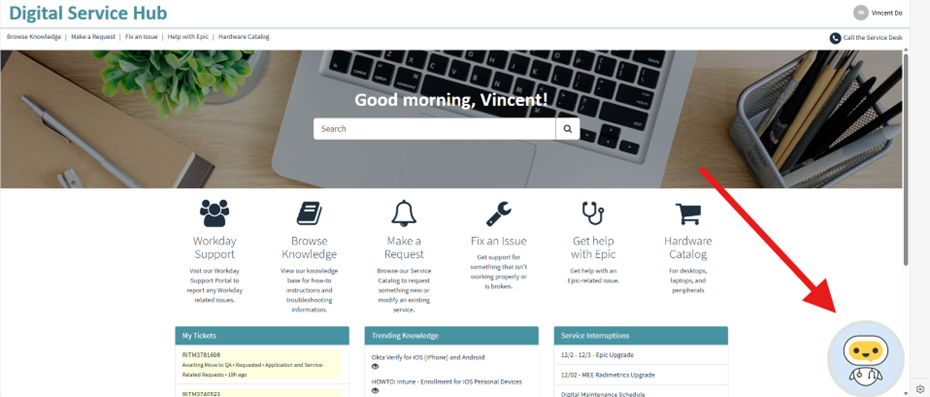 - Vitals and Digital Service Hub and AskMyHR: Look for InfoBot in the bottom-right corner of the page.