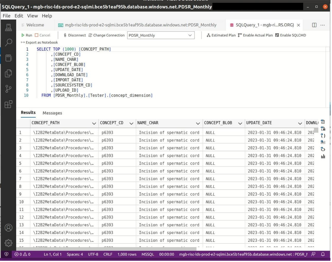 Server: mgb-risc-lds-prod-e2-sqlmi.bce5b1eaf95b.database.windows.net