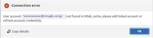 The error message “User account ‘@email’ not found in MSAL cache…” indicates that Azure Data Studio (ADS) cannot locate a valid Microsoft authentication token for this user in its local cache. This issue may arise due to several reasons: